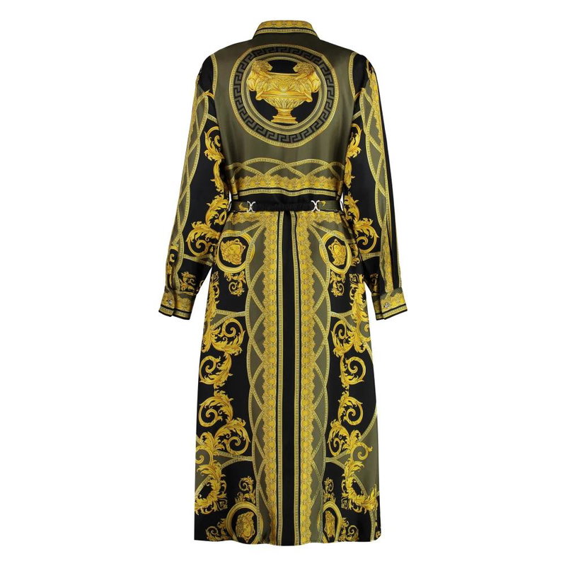 Versace La Coupe Des Dieux Silk Midi Shirt Dress pairs the house’s La Coupe Des Dieux print with classic shirtdress detailing. Cut in silk, it offers a polished option for daytime or evening wear with added movement from side slits.