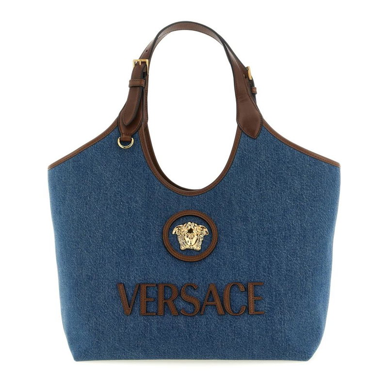 Shop More: Blue Bags Blue Tote Bags VERSACE Bags VERSACE Tote Bags