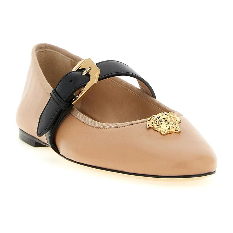 Shop More: Beige Shoes Beige Flats Beige Ballet Flats VERSACE Shoes VERSACE Flats