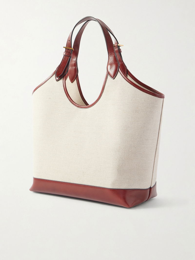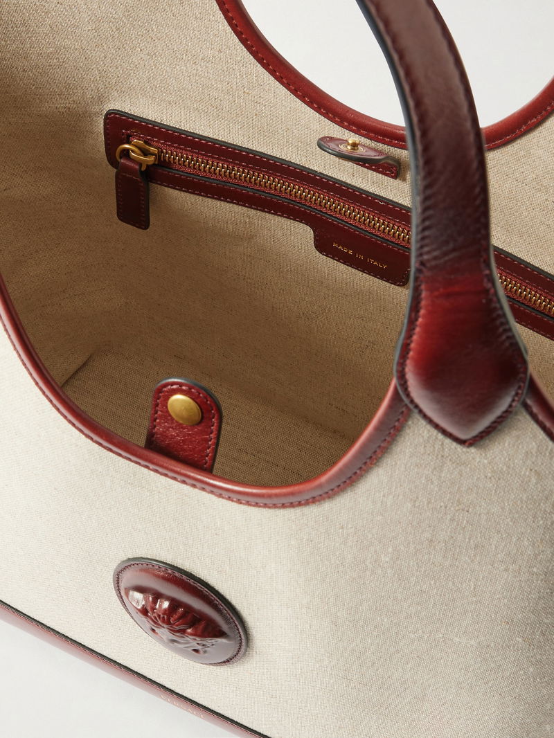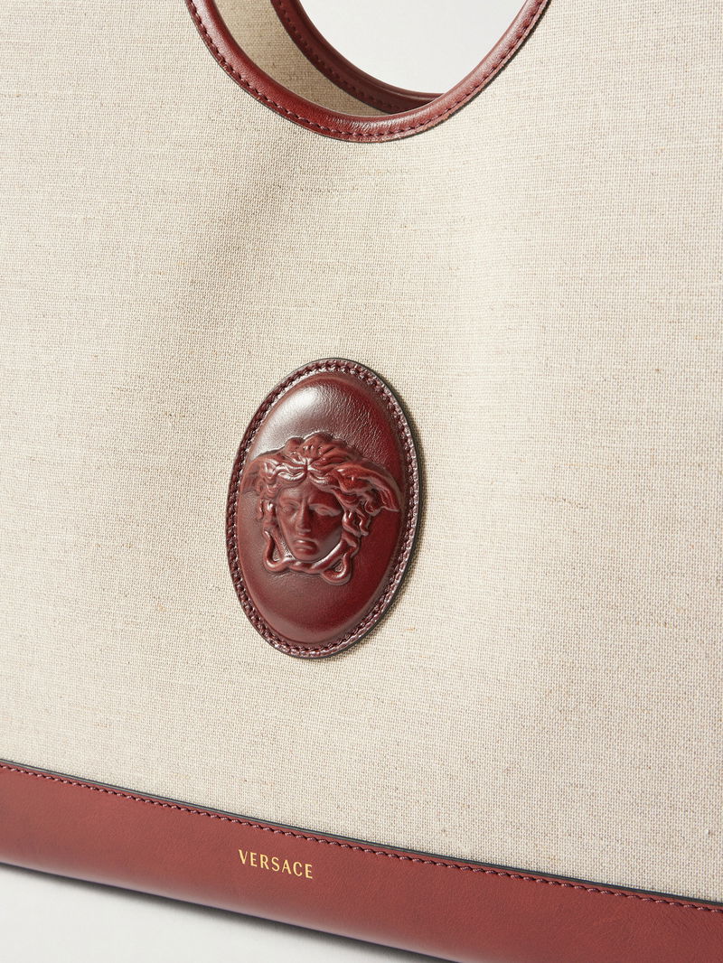 Versace’s large tote combines durable canvas with calf leather trims and gold-tone hardware for a refined contrast. Its spacious interior is ideal for carrying daily essentials — think your phone, a book and a bottle of water.