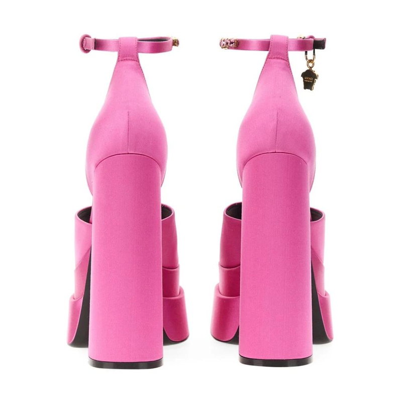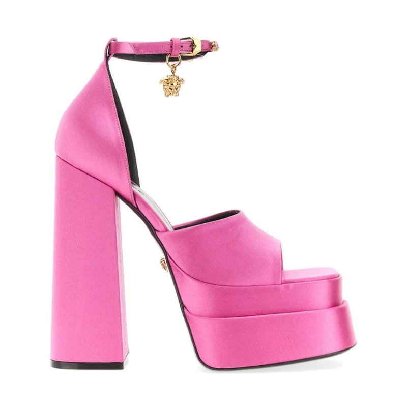 Shop More: Pink Shoes Pink Sandals Pink High Heeled Sandals VERSACE Shoes VERSACE Sandals VERSACE Pink Shoes VERSACE High Heeled Sandals