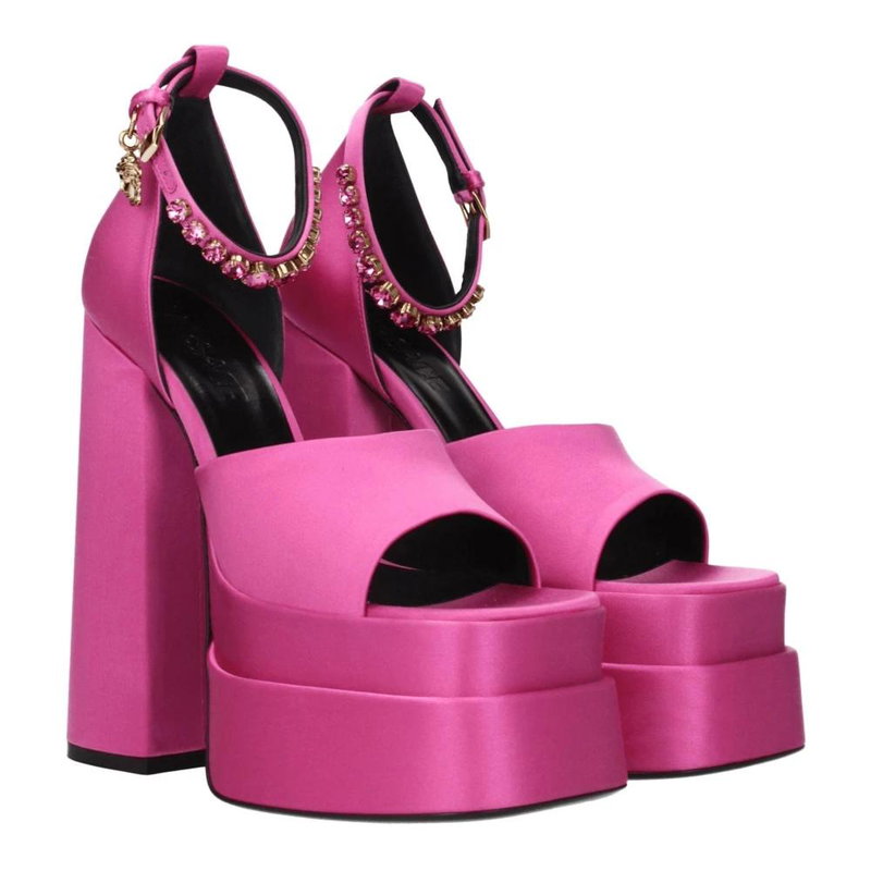 Shop More: Pink Shoes Pink Sandals Pink High Heeled Sandals VERSACE Shoes VERSACE Sandals VERSACE Pink Shoes VERSACE High Heeled Sandals