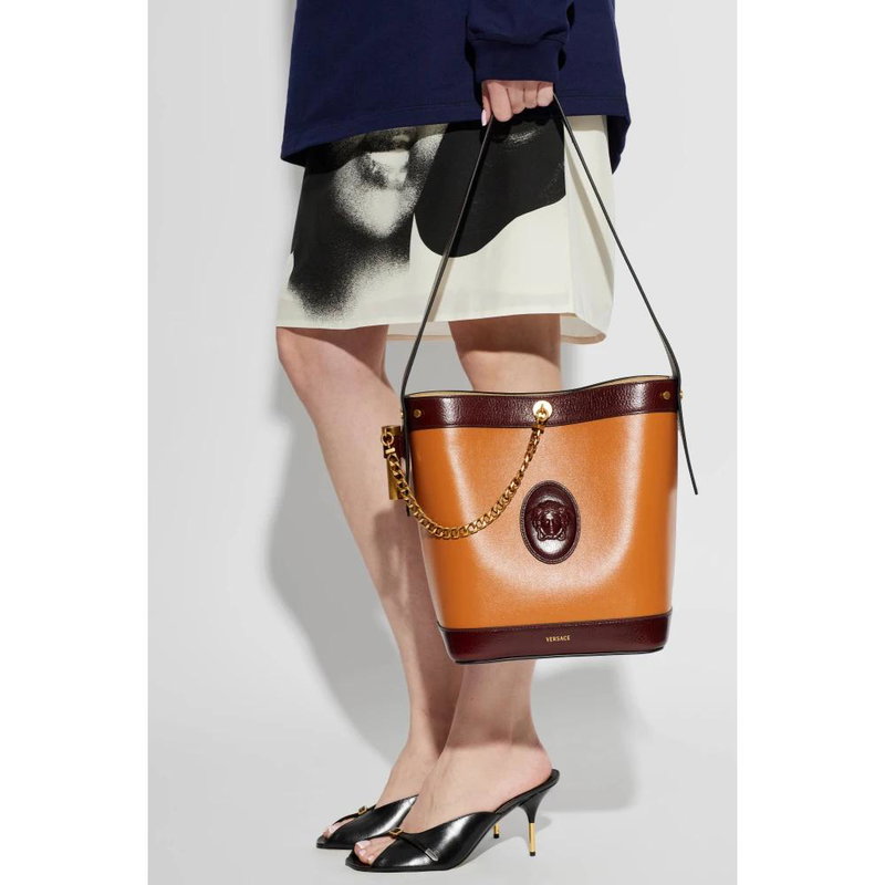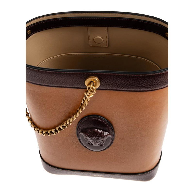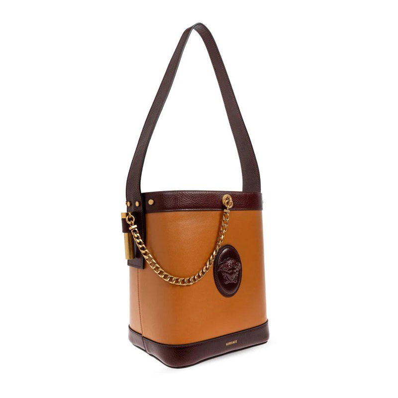 Shop More: Brown Bags Brown Bucket Bags VERSACE Bags VERSACE Brown Bags