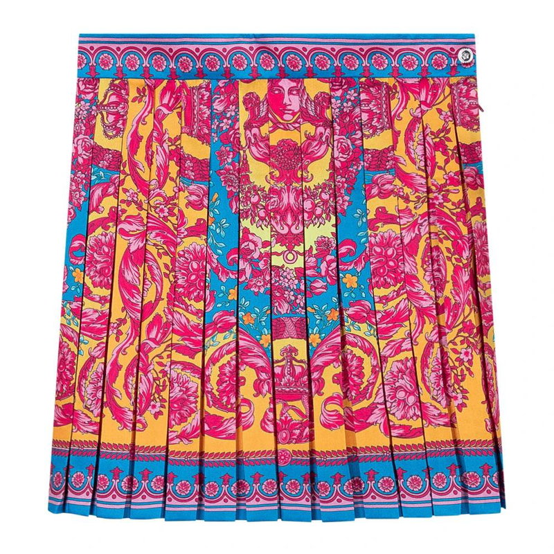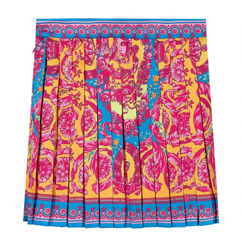 Versace Pleated Skirt features an all-over baroque print and a contrasting decorative motif at the hem. Vertical pleats create movement for a refined statement look.