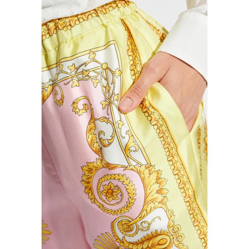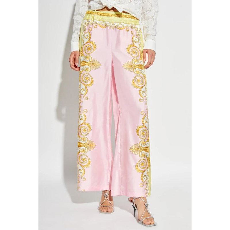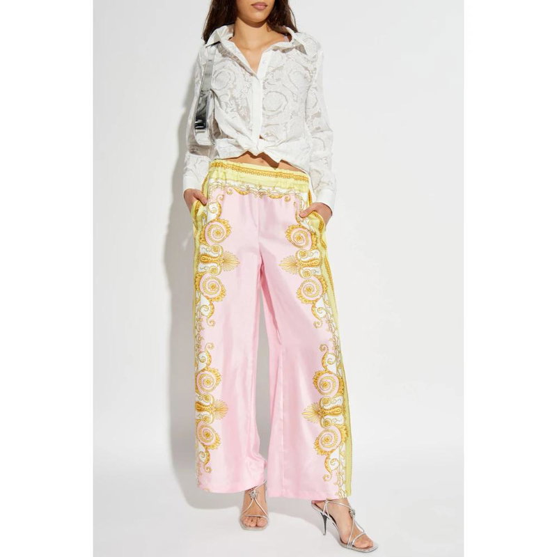 Shop More: Pink Clothing Pink Trousers Pink Wide Legged Trousers VERSACE Clothing VERSACE Pink Clothing VERSACE Trousers VERSACE Wide Legged Trousers