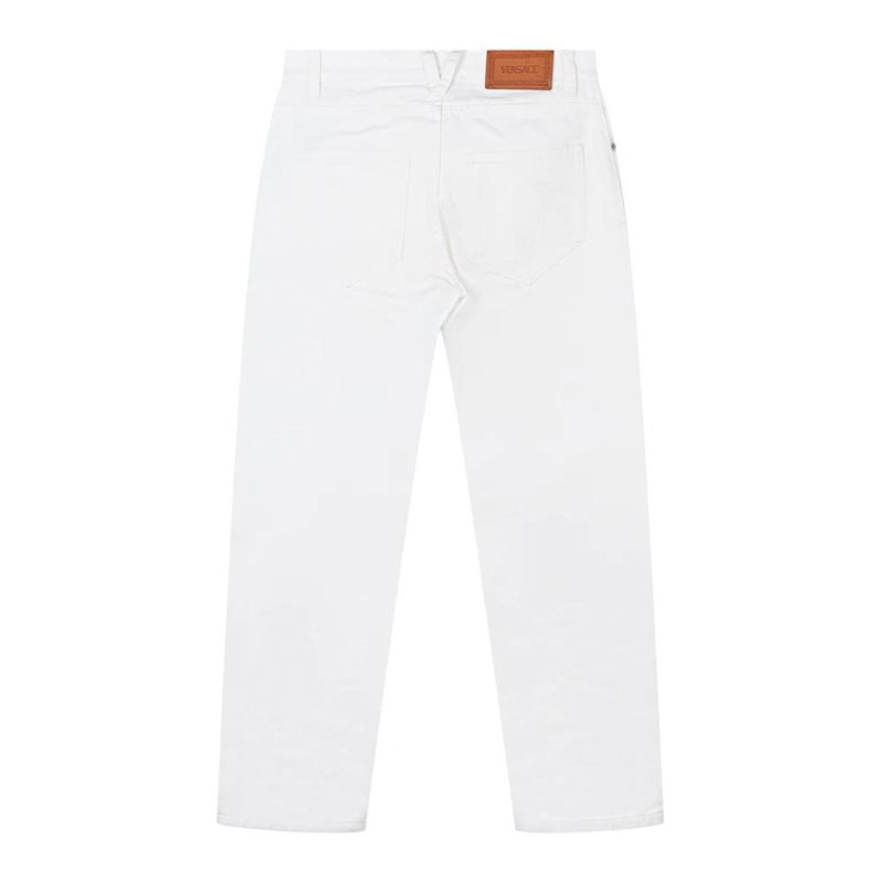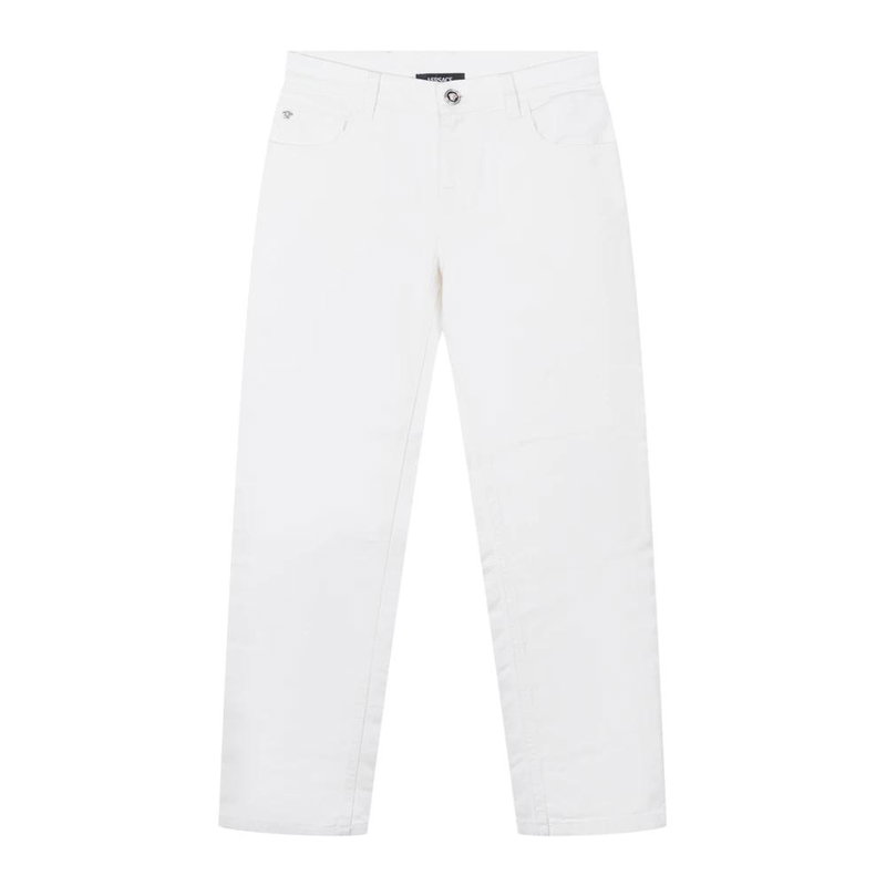 Versace Straight Leg Jeans deliver a clean, ankle-length silhouette designed for polished everyday looks. The pair balances classic denim details with a streamlined straight leg for versatile styling.