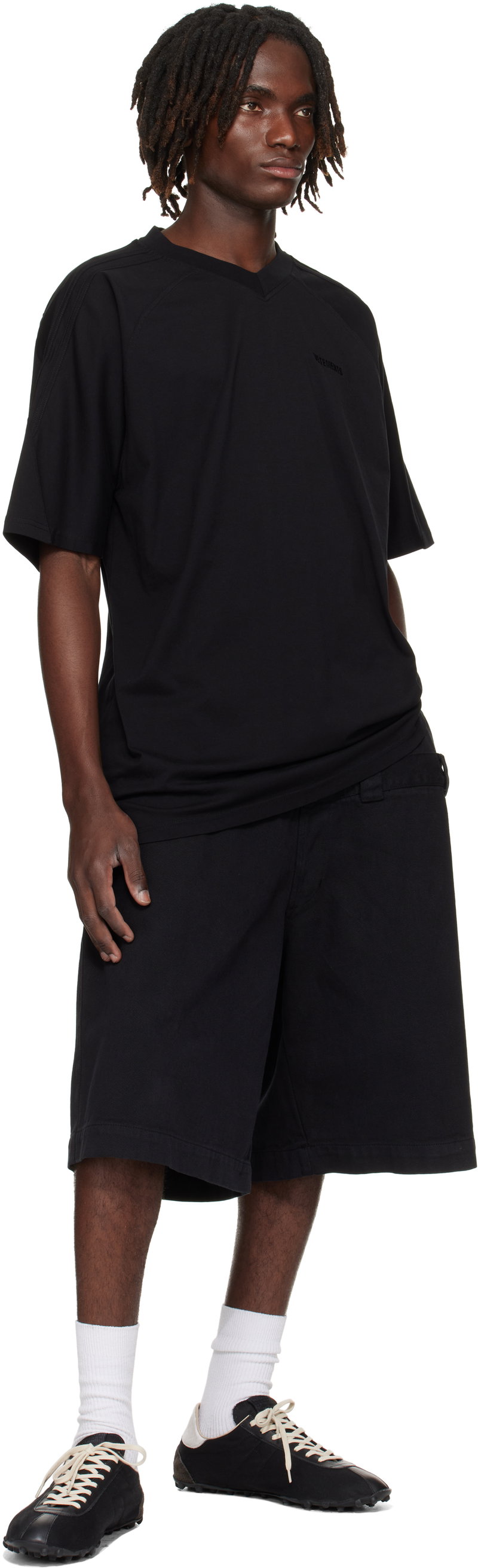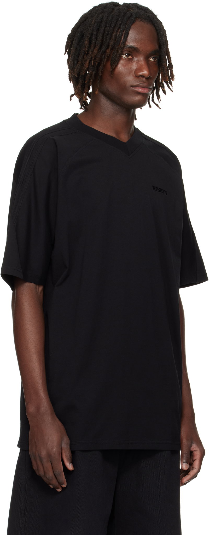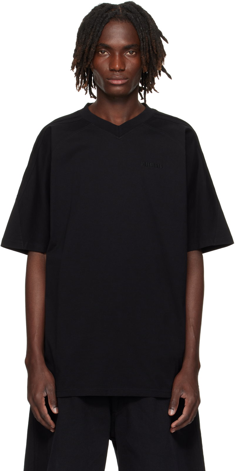 Black Cut-Up V-Neck T-shirt