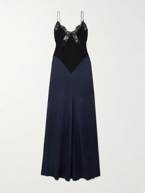 EXCLUSIVE AT NET-A-PORTER. Victoria Beckham's floor-sweeping gown is a true celebration of the feminine form. Made from lustrous stretch-satin, it has an open back and is ruched through the cutout bodice to accentuate your curves. Complement the plunging neckline with a lariat chain.