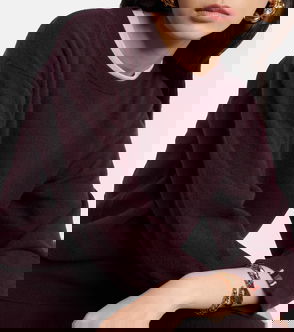 Sweater, Cashmere-blend, Cropped, Embroidered logo, Ribbed trims, Slips on, Mid-weight knit.