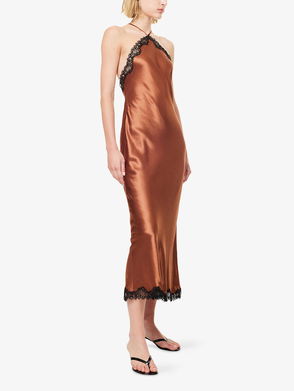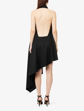 Dress, Woven, Shirred, Concealed hook and zip fastening at side, Ties at neck, Internal gumming, Non-stretchy fabric, Mid-weight fabric.