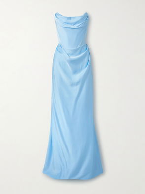 It's made from organic silk-chiffon and satin and has a sculptural, strapless bodice reinforced with wireless cups and internal boning. - Net a Porter
