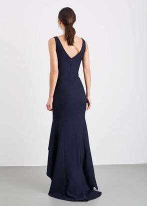 Dress, Printed, Woven, Cord trims, Cutout, Front split, Partially lined, Ties at back, Mid-weight fabric.