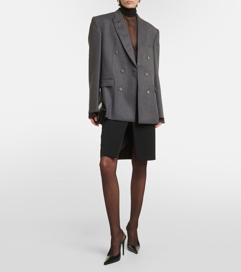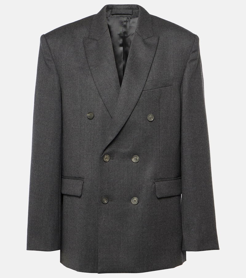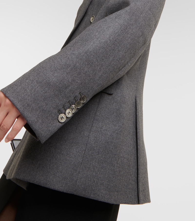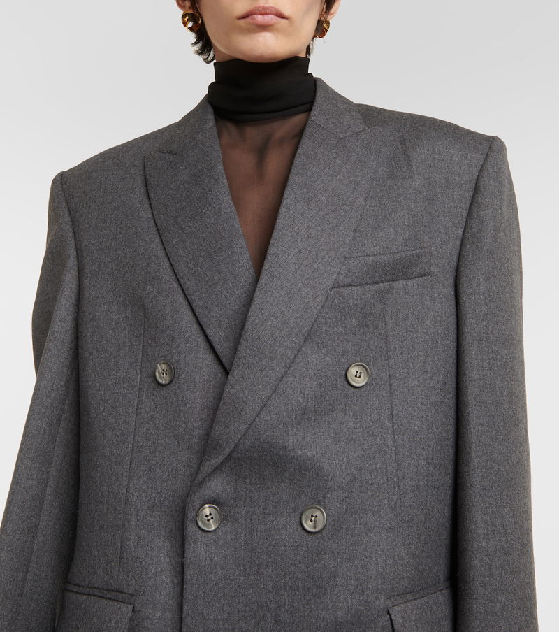 Double-breasted, buttoned front, flap pockets, internal pocket.