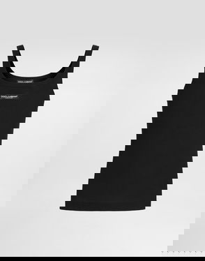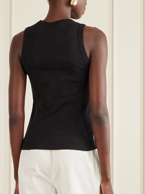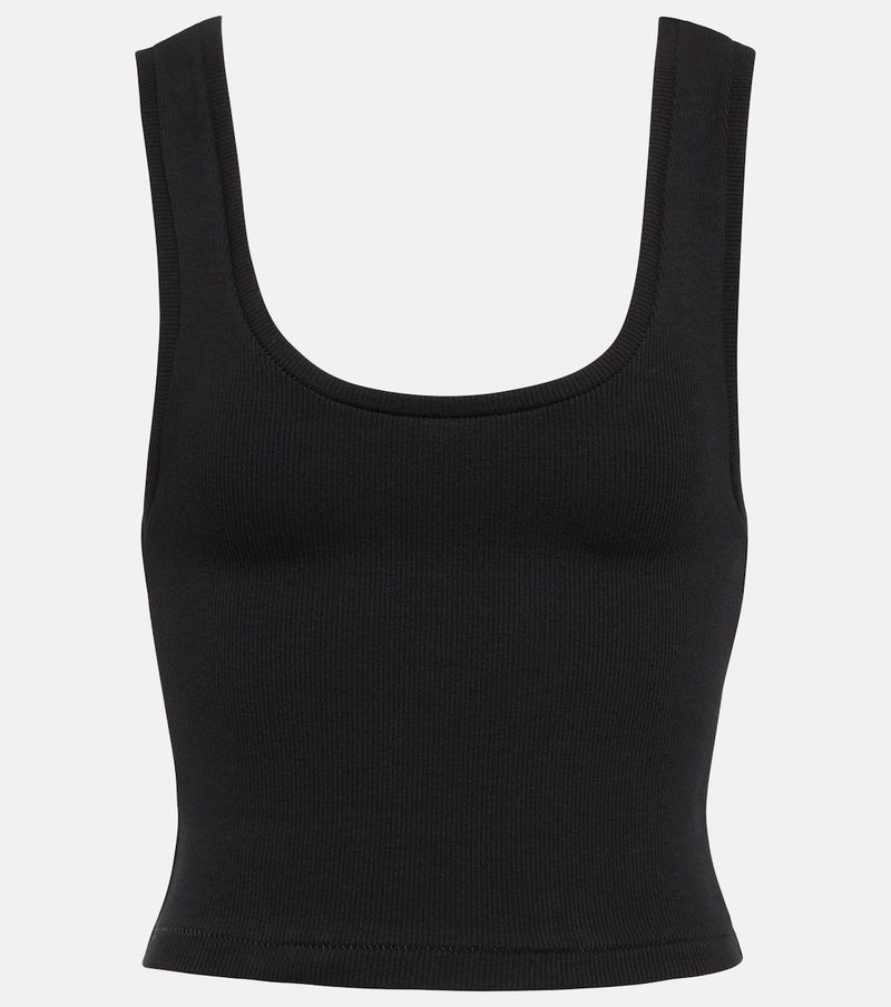 This tank top from Wardrobe.NYC is an everyday wardrobe staple. Made from a cotton blend, the ribbed-knit style in black is designed with a flattering rounded neckline, wide straps, and a slim fit.