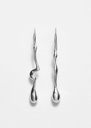 A pair of drop-shaped earrings measuring 3 cm in height. They feature a butterfly pin closure and are crafted from recycled zinc.