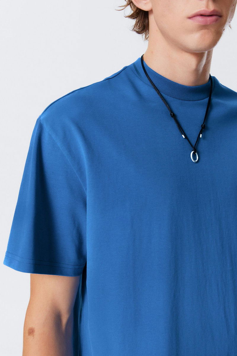 An oversized t-shirt made from a soft heavyweight quality cotton jersey. This classic has a ribbed crew neck, dropped short sleeves that fall just above the elbows, and straight stitched hems.