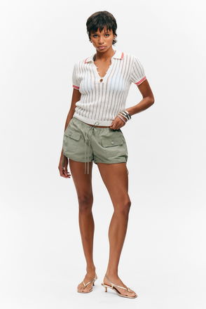 Knitted Short-Sleeved Cotton Polo Top
