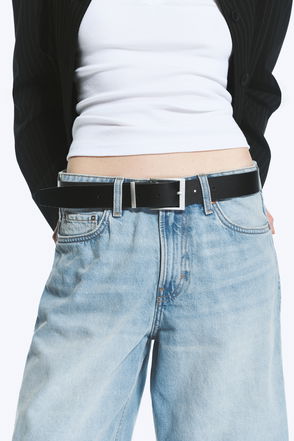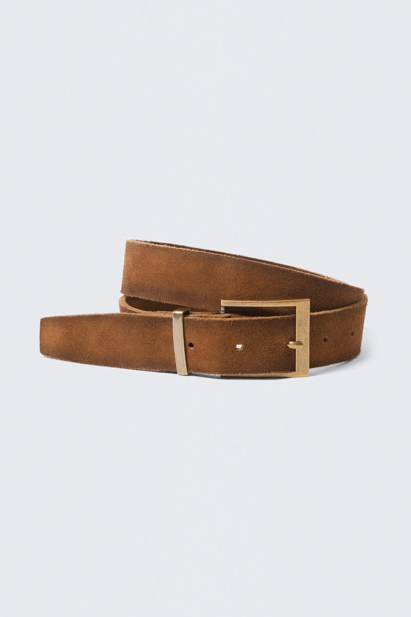 A belt crafted from soft leather with a clean, minimal look. Designed with raw cut edges and a rectangular metal buckle, it has a straight silhouette that works easily with trousers and jeans.
