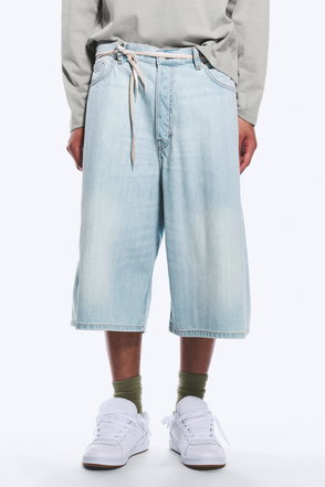 Mid Rise Baggy Pleated Denim Shorts