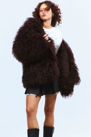 A single breasted maxi coat with a coated faux leather look, made from a recycled polyester.