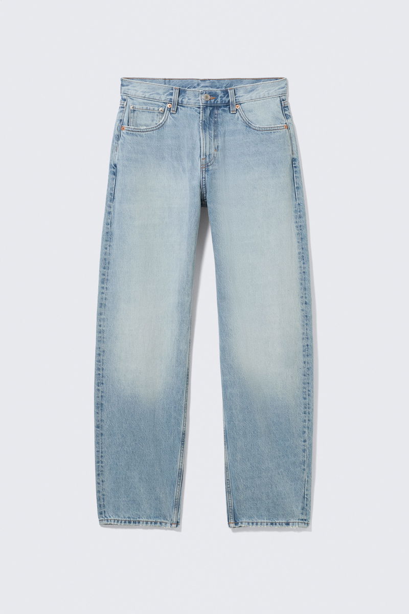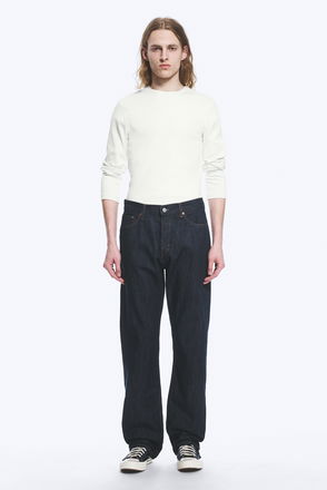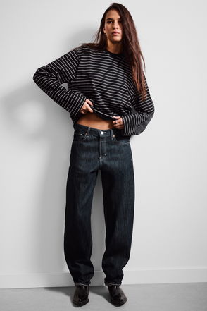 A pair of mid-rise jeans with a loose fit and barrel-shaped leg. Crafted from an organic cotton denim with recycled cotton.