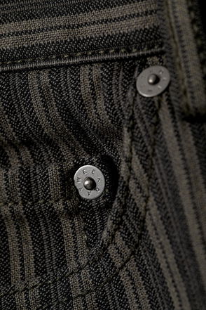 A pair of low waist slim fit bootcut cord trousers crafted from recycled polyester and cotton.