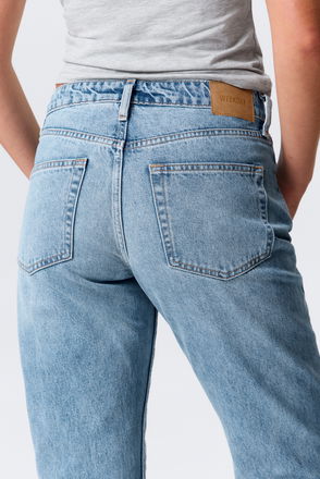 A pair of mid rise unisex jeans with a regular fit, straight leg and long length. These jeans are crafted from organic cotton rigid denim enhanced with recycled cotton.