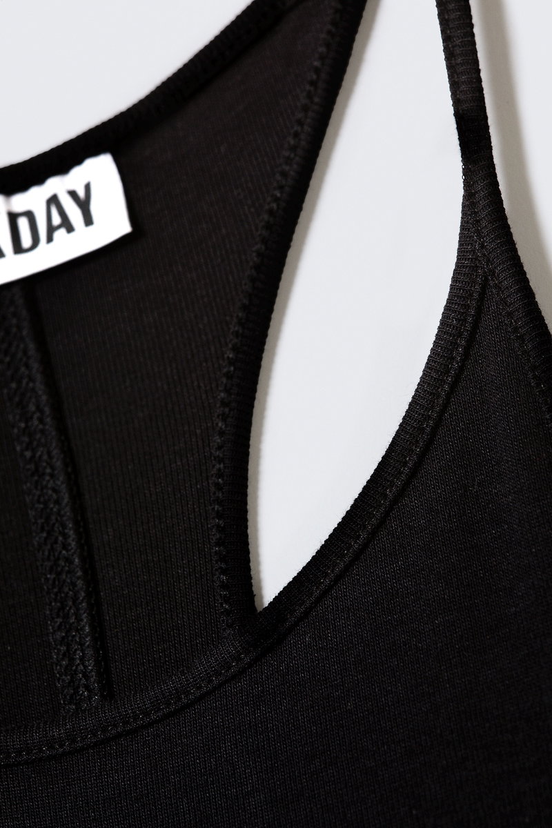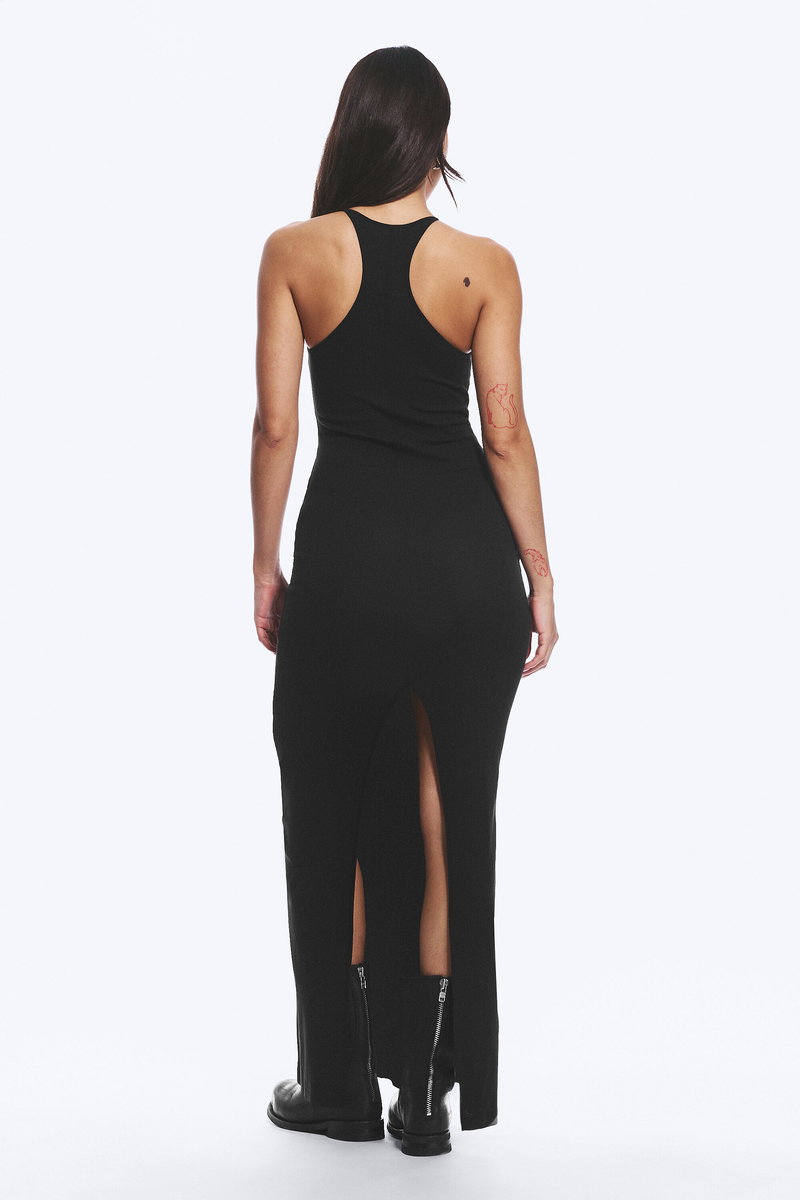 A sleeveless maxi dress cut to a slim fit, crafted from soft cotton jersey. Designed with a high round neckline and a racerback that keeps the silhouette minimal. Finished with a centre-back seam and a back slit for ease of movement.