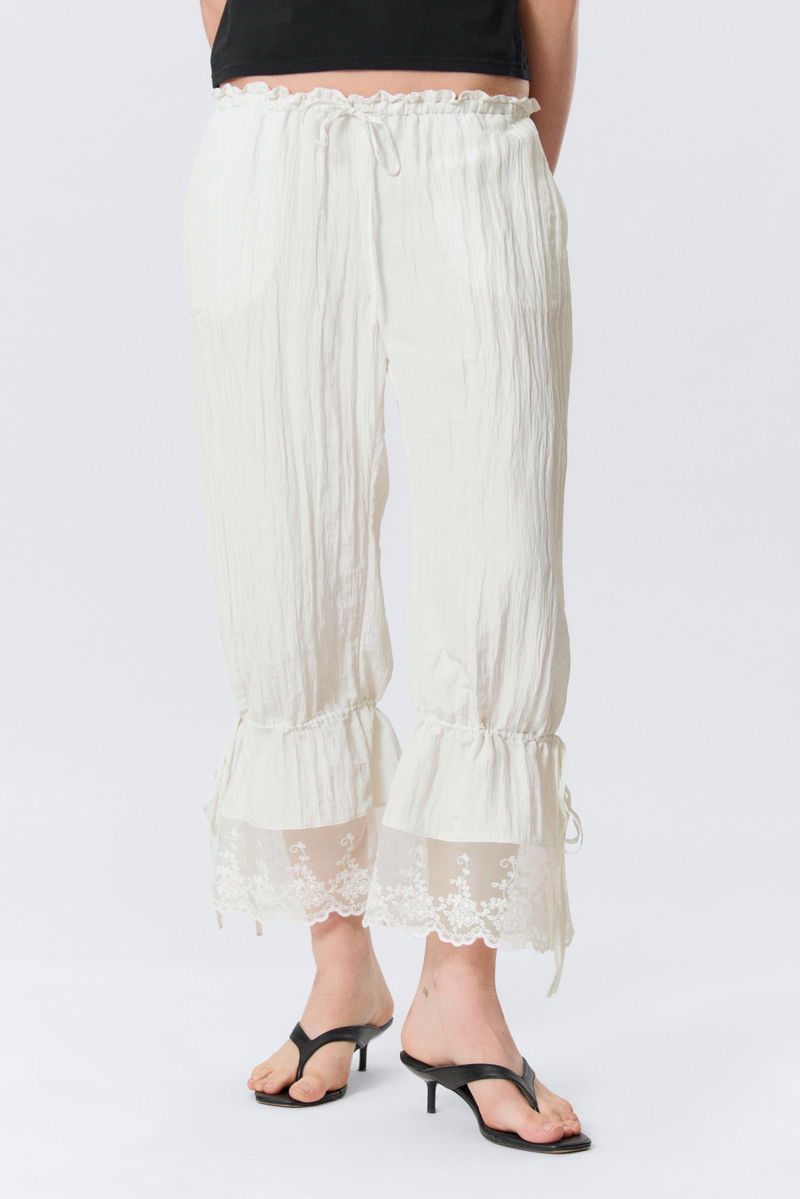 A pair of low-rise, loosey-lacey bloomers that just rests on the hip, like I don’t care but I do, I really do. They’ve got an easy elastic drawstring waistband, plus side pockets for tiny treasures. The three-quarter legs finish in wide, lace-trimmed hems with their own drawstrings, personalise the scrunch depending on the mood. Romantic pirate, little bit mischievous. Very me.