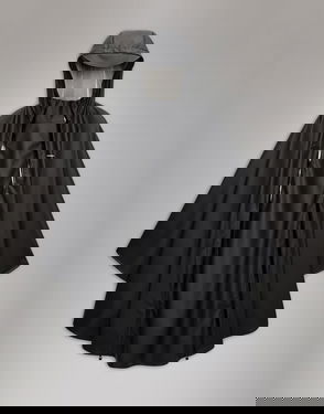 It features slightly dropped shoulders, slanted welt pockets, elasticated cuffs and hemline, and a sturdy two-way front zipper.