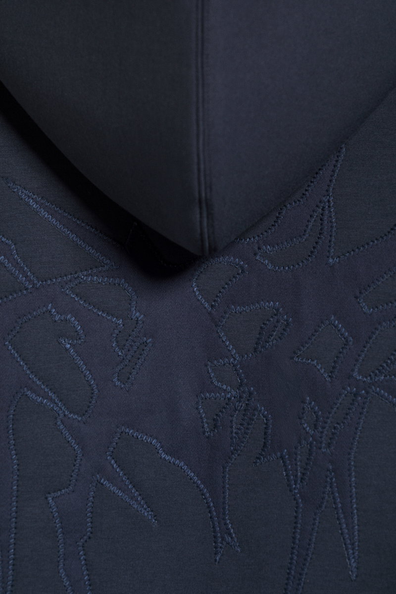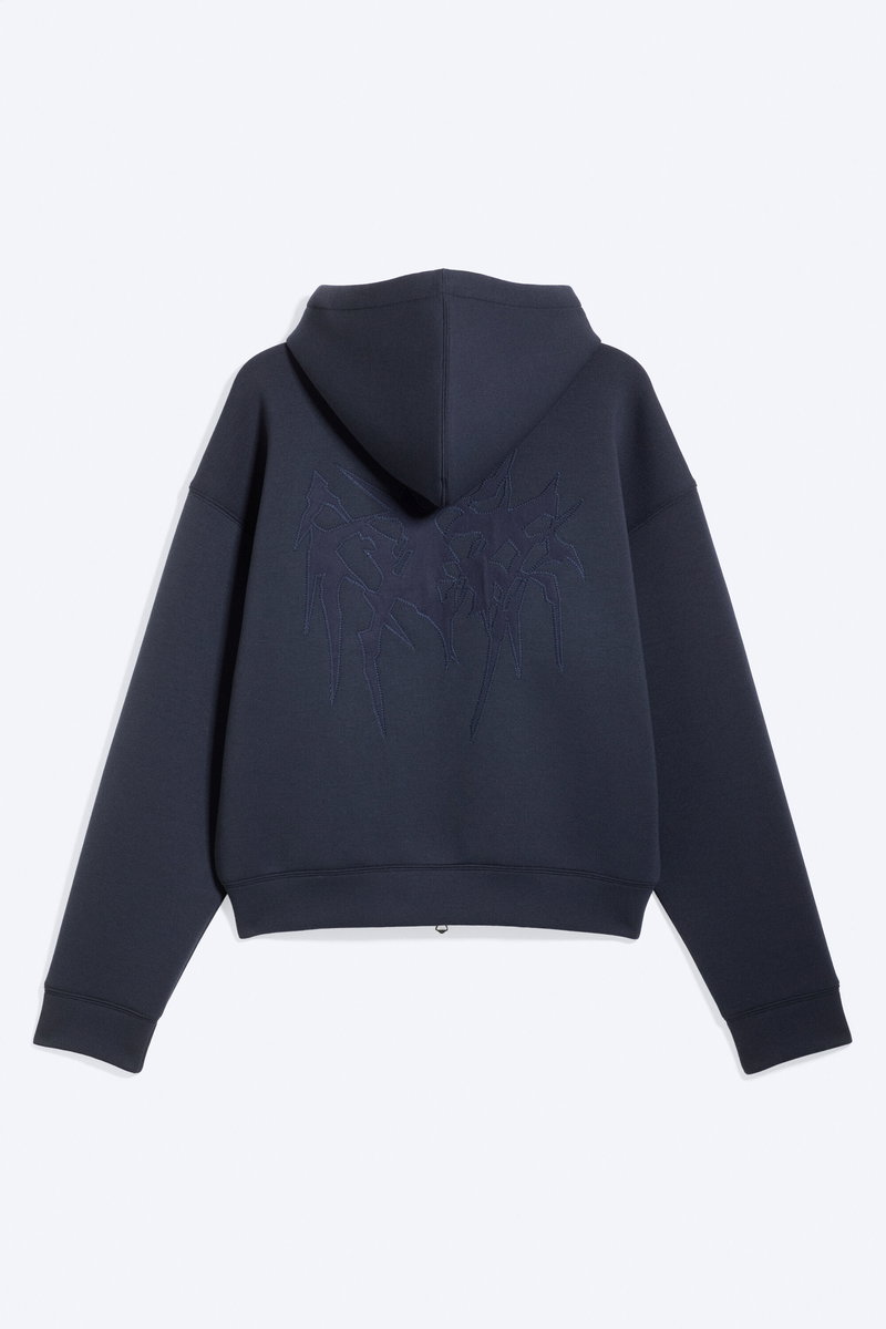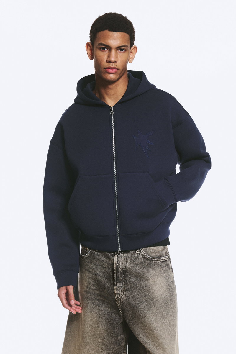 A chunky zip hoodie with a loose fit and a structured silhouette. Crafted from chunky scuba fabric with a soft feel, it features a 3D embossed graphic across the chest for added texture.