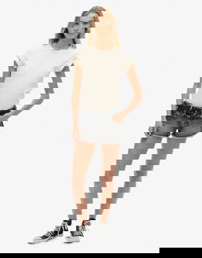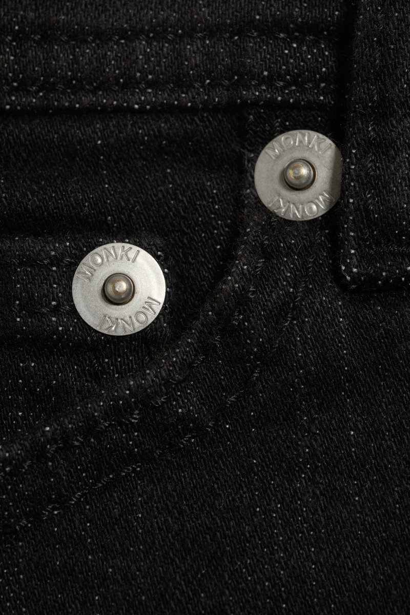 A pair of low-rise hotpants with a slim fit, crafted from super stretch cotton denim. Designed with a classic five-pocket construction, buttoned flap pockets at the back, and a zip fly with button closure.