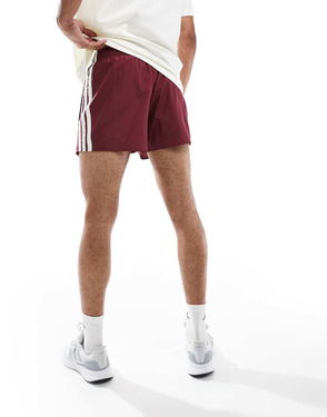 A pair of striped structured swim shorts with a relaxed fit and a mid-thigh length. Crafted from lightweight fabric, they feature an elasticated waistband with an adjustable drawstring, discreet side slits for ease of movement and a back welt pocket.