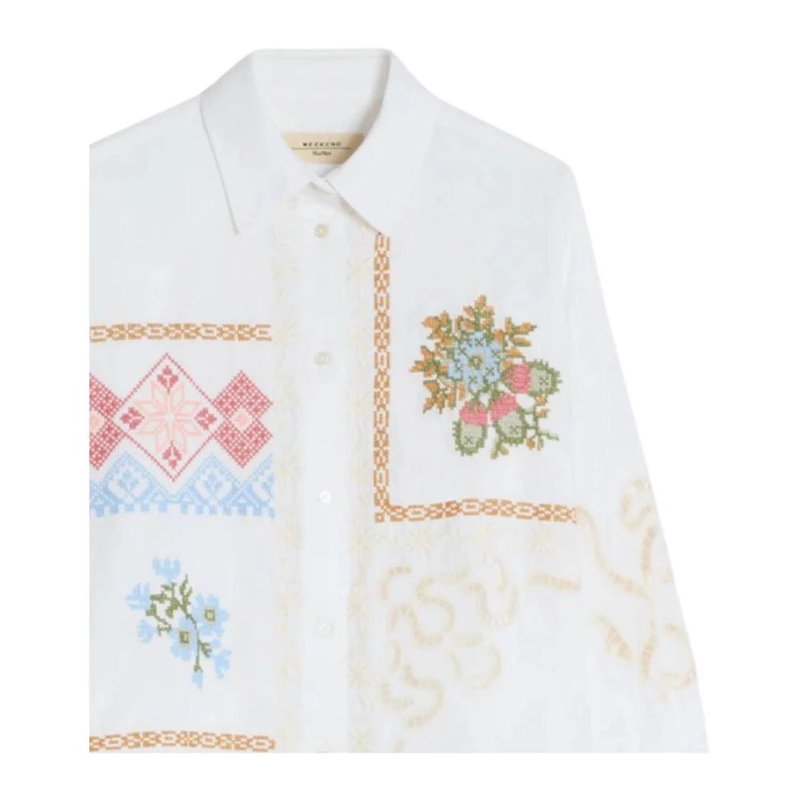 Weekend Max Mara Camicia ricamata con pizzo is a cropped poplin shirt that highlights intricate cross-stitch embroidery and Sangallo lace for a refined daytime look. It’s designed for a lightweight, relaxed silhouette ideal for casual and smart-casual outfits.