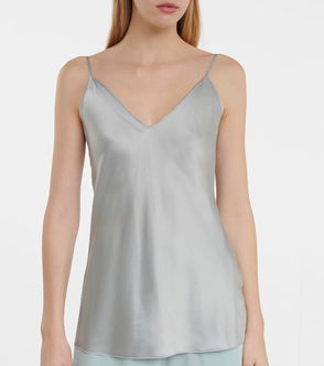 Silk georgette camisole. Ruffles and floral pattern throughout. · Scoop neck· Fixed shoulder straps· Zip closure and self-tie fastening · Full crêpe lining.