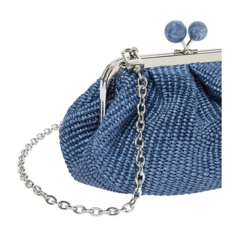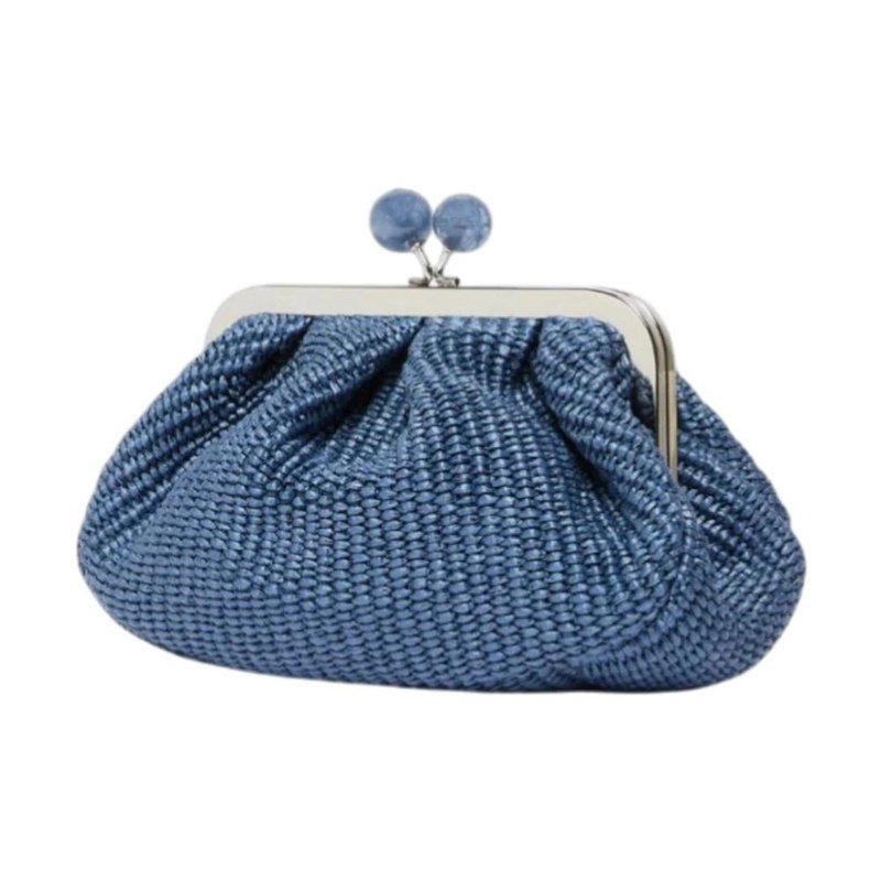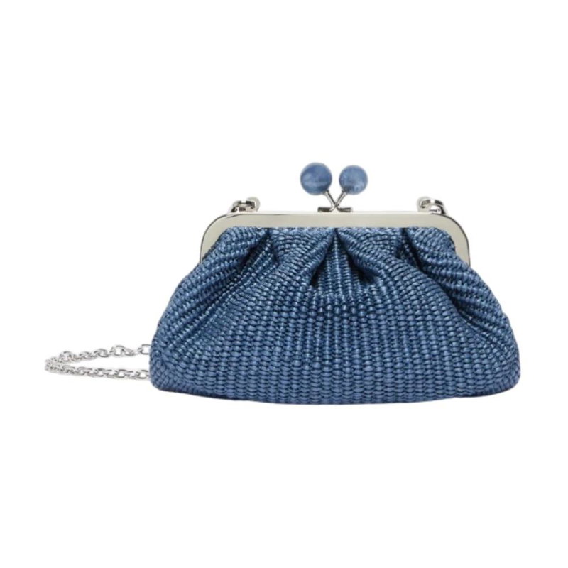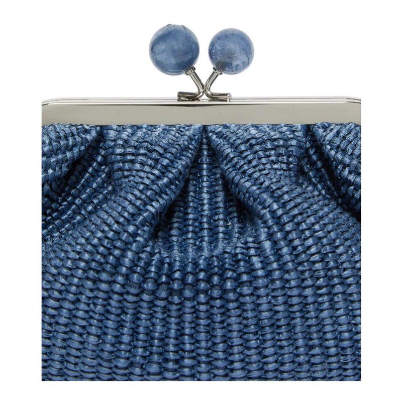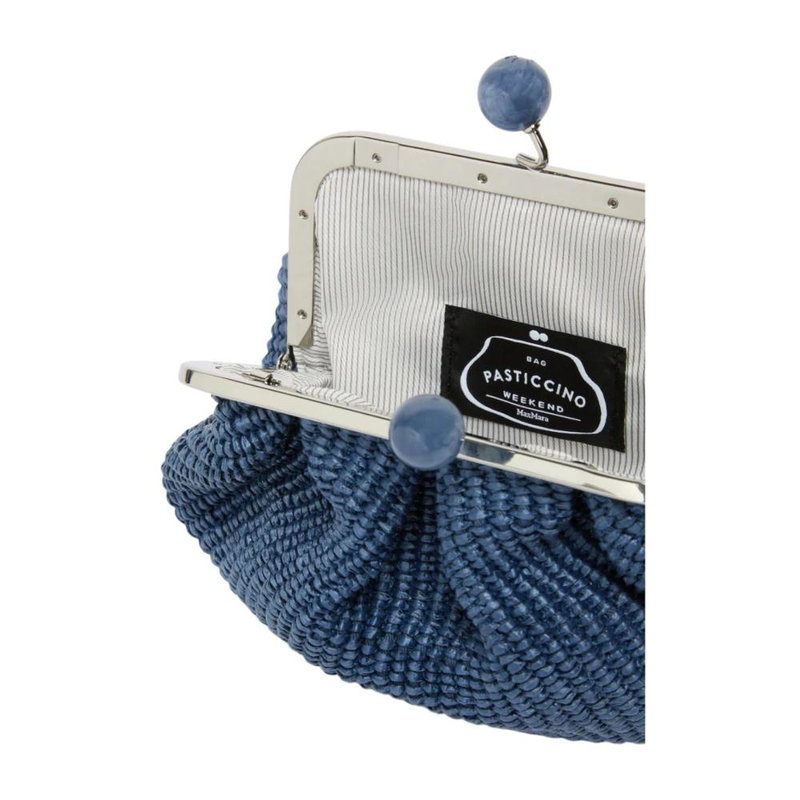 Weekend Max Mara Pasticcino Bag Small is a compact clutch that pairs a raffia-effect woven finish with a versatile carry option, perfect for elevating everyday and evening looks. The removable chain strap and metal closure with branded spheres deliver practical versatility and a refined touch.