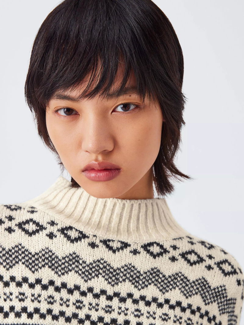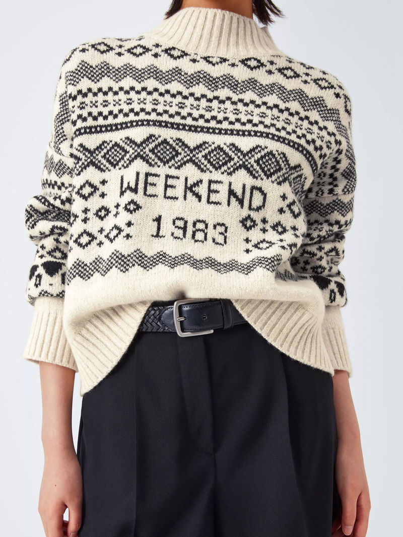 Weekend MaxMara Brioso High Neck Patterned Jumper, White