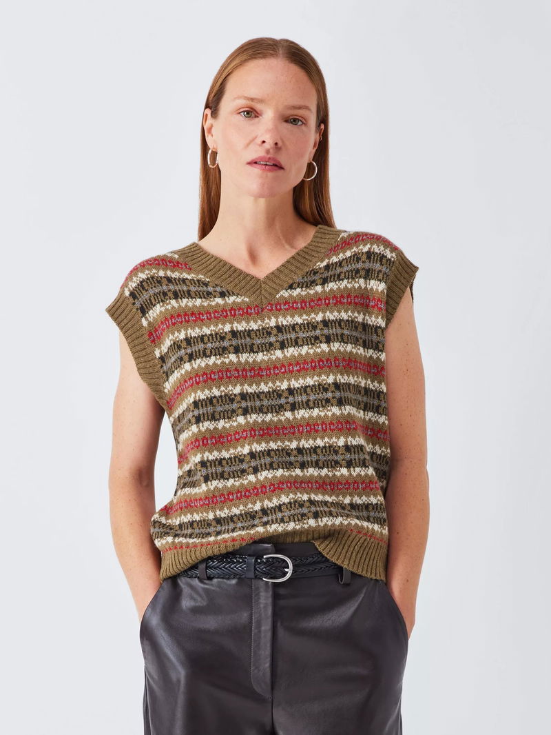Topped with a V-neck, this mid-weight Fair Isle knit jumper by Weekend MaxMara is made from a robust yet sumptuously soft alpaca wool blend.