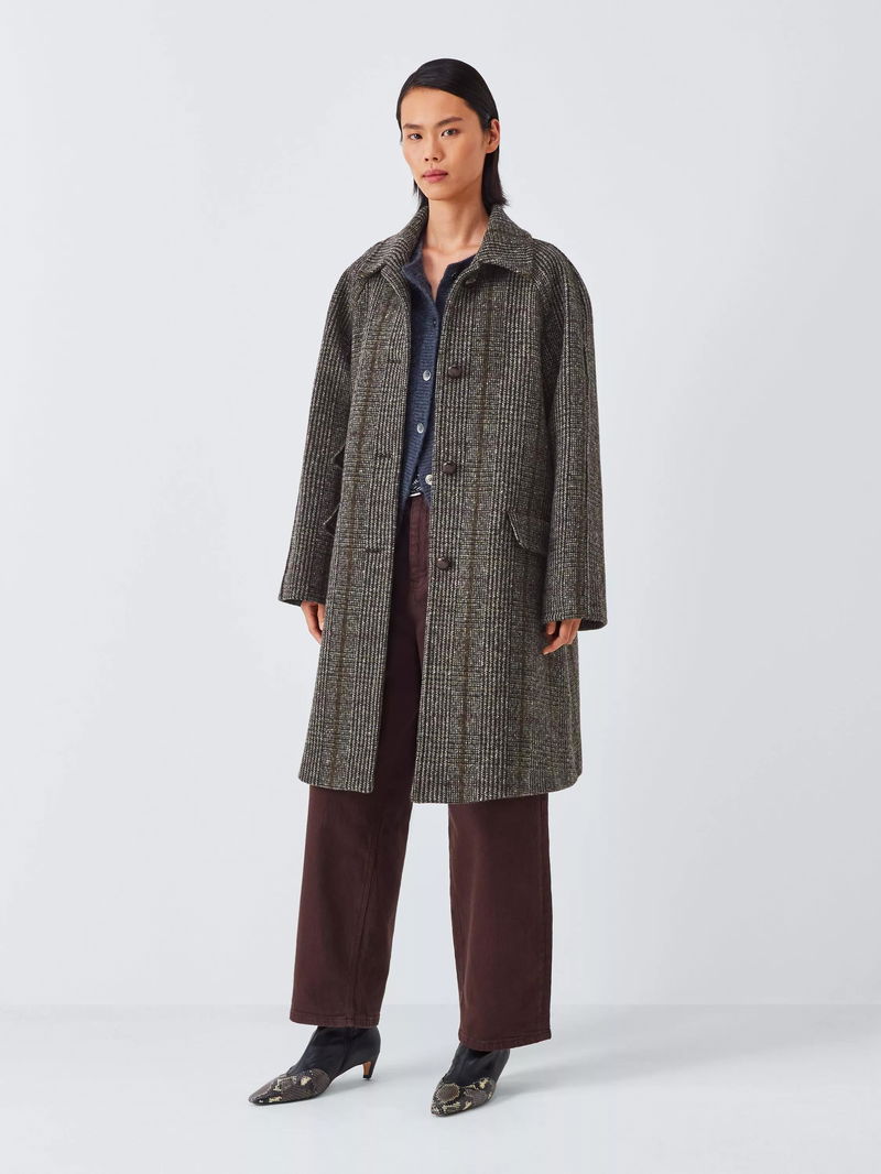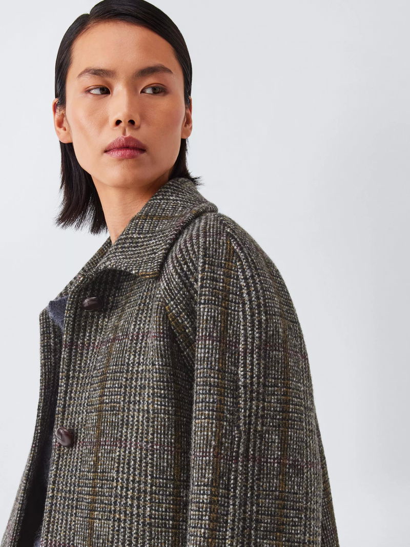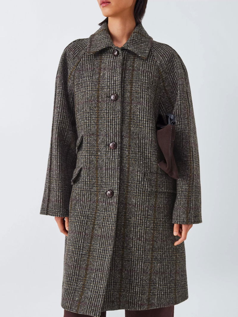 A refined choice to stave off unpredictable weather, this coat from Weekend MaxMara is cut to a longer length for a flattering profile. Featuring a neat collared neckline and offset by a splash of checks, it makes for a warming choice thanks to its wool blend fabric.