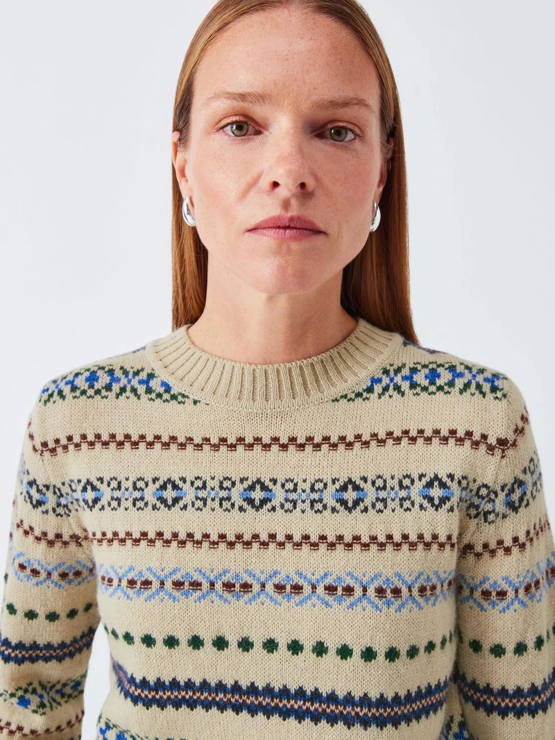 Weekend MaxMara Quirite Fair Isle Wool Rich Jumper, Ecru/Multi