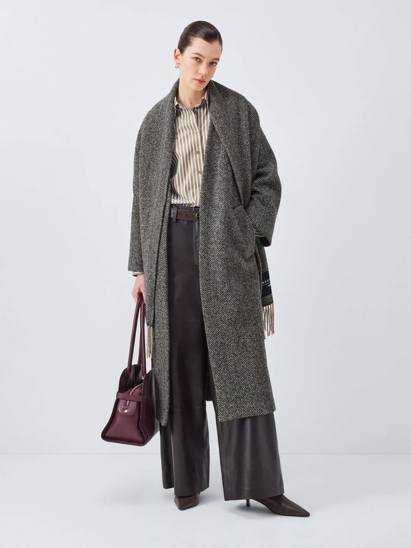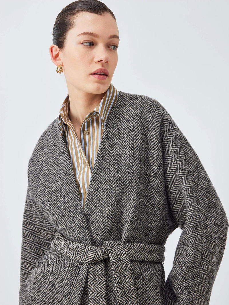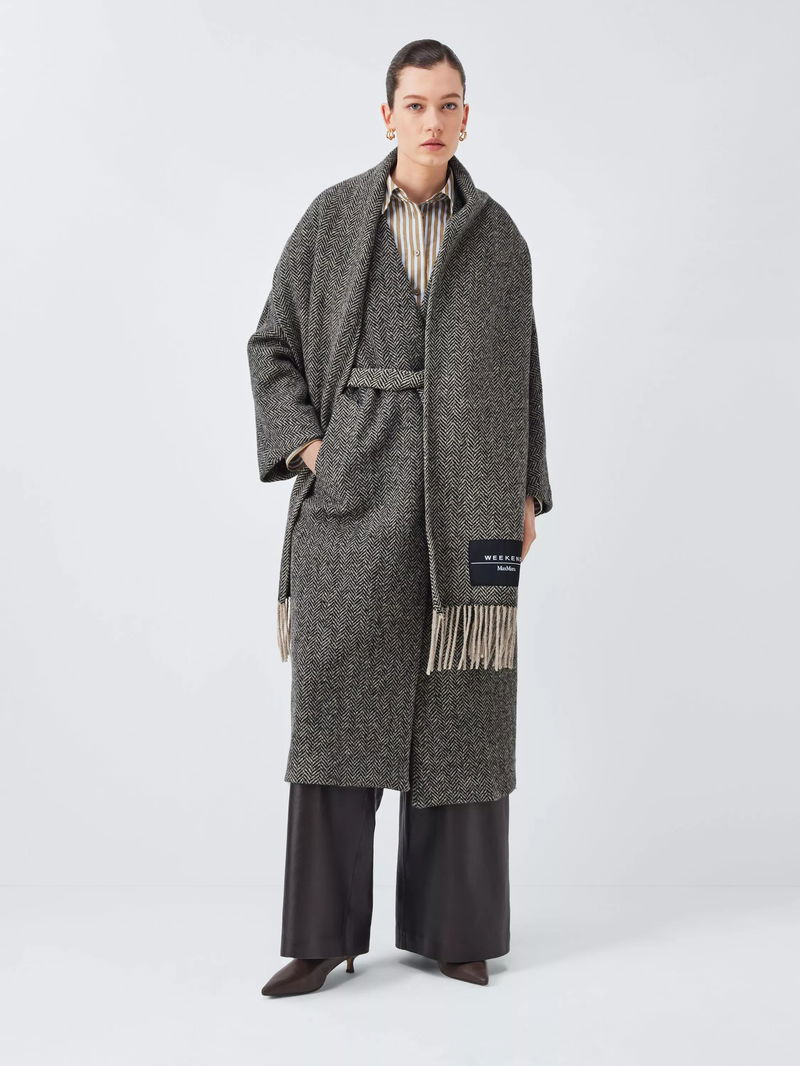 Weekend MaxMara Zenica Wool Blend Tweed Wrap Coat, Black/Grey