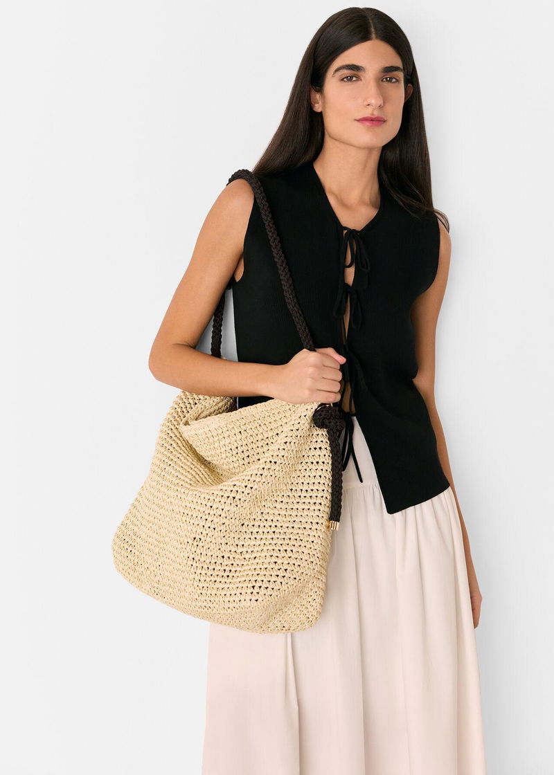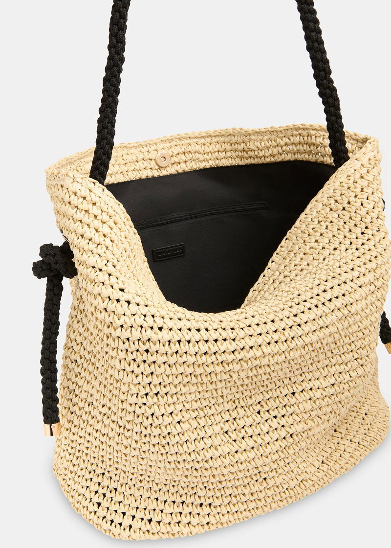 Meet your ultimate holiday essential: our Attie Rope Handle Straw Tote. It’s crafted from a straw-style fabric with a rope handle and fabric lining – perfect for carrying your essentials – as well as designed to a large size to make it ideal for a day at the beach or exploring a new city.