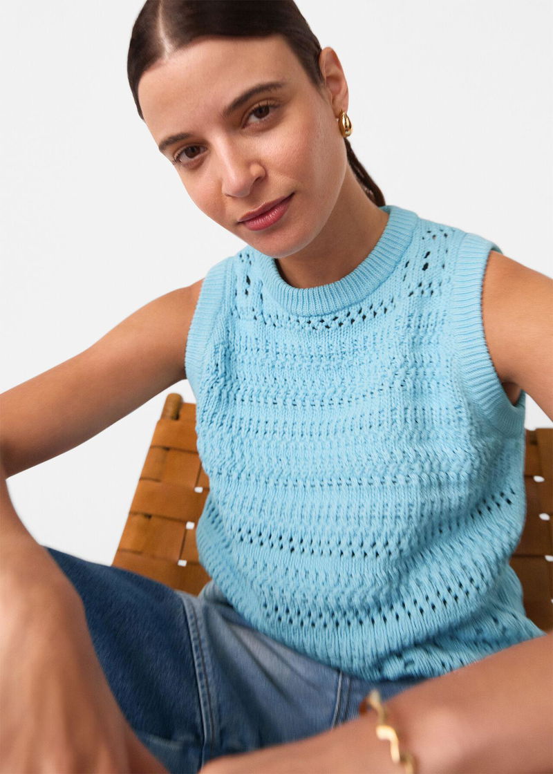 Impeccable fits, premium fabrics and unique prints; our Limited Edition Collection is a contemporary edit of design-led pieces alongside more timeless investments — all made to a strictly limited run, so exclusivity is guaranteed. Pastel hues are a staple of spring-summer style, bringing a touch of vibrancy to warm-weather dressing. Echoing this, our Chunky Cotton Pointelle Tank in a soft light blue will be your go-to this season, effortlessly pairing with everything from denim shorts to jeans and skirts. It features a chunky pointelle knit with decorative openwork, making it perfect for sunny days and light breezes. Whether you're attending an afternoon garden party or enjoying a casual stroll through the city, this tank is an essential layering piece. Pair it with the matching cardigan for a cohesive, chic look.