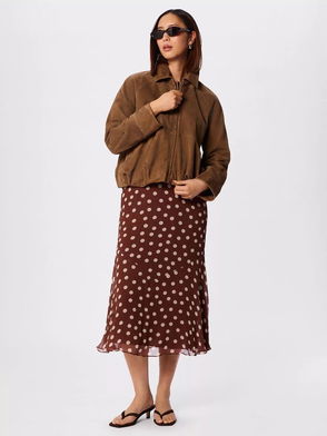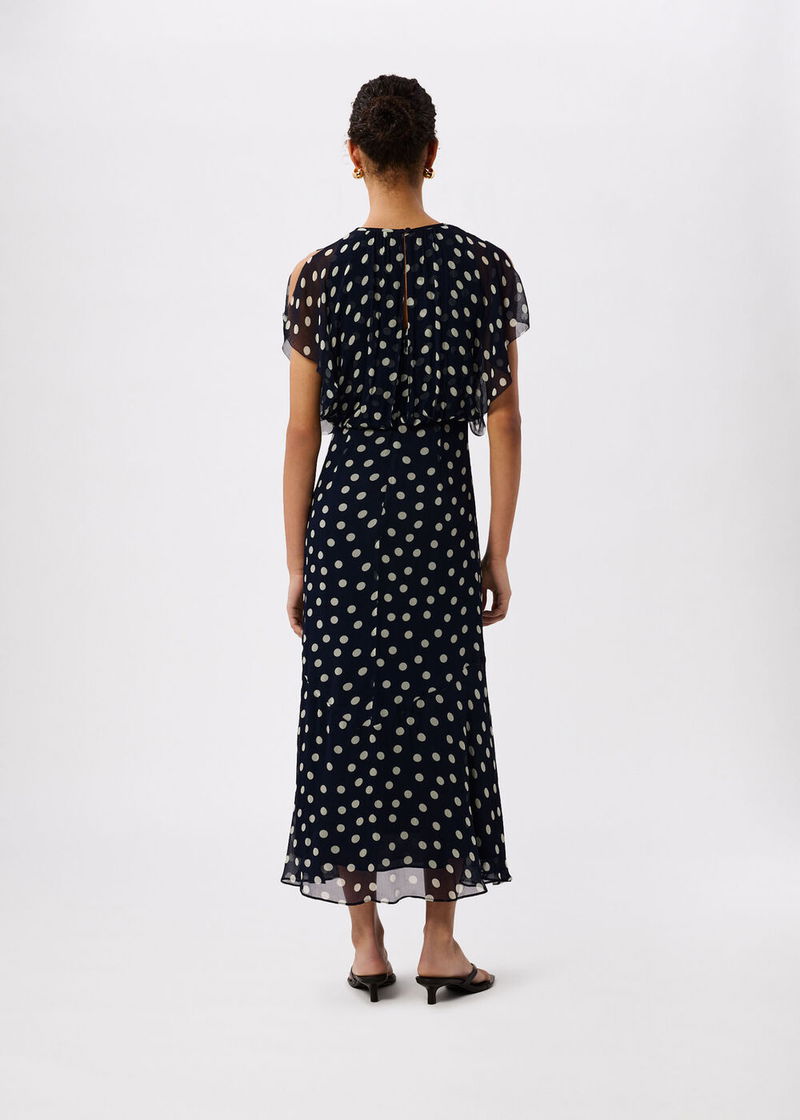 With a classic and timeless print, our Polka Dot Midi Dress is made for the brighter days ahead. Perfect for everything from lunch dates to daytime celebrations, it’s a guaranteed winner. In a classic shade with contrasting white dots, the dress is cinched at the waist and features a round neckline with short, open sleeves that subtly reveal the shoulders. Crafted with two layers, it combines a brown lining with a sheer polka dot overlay.