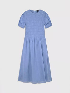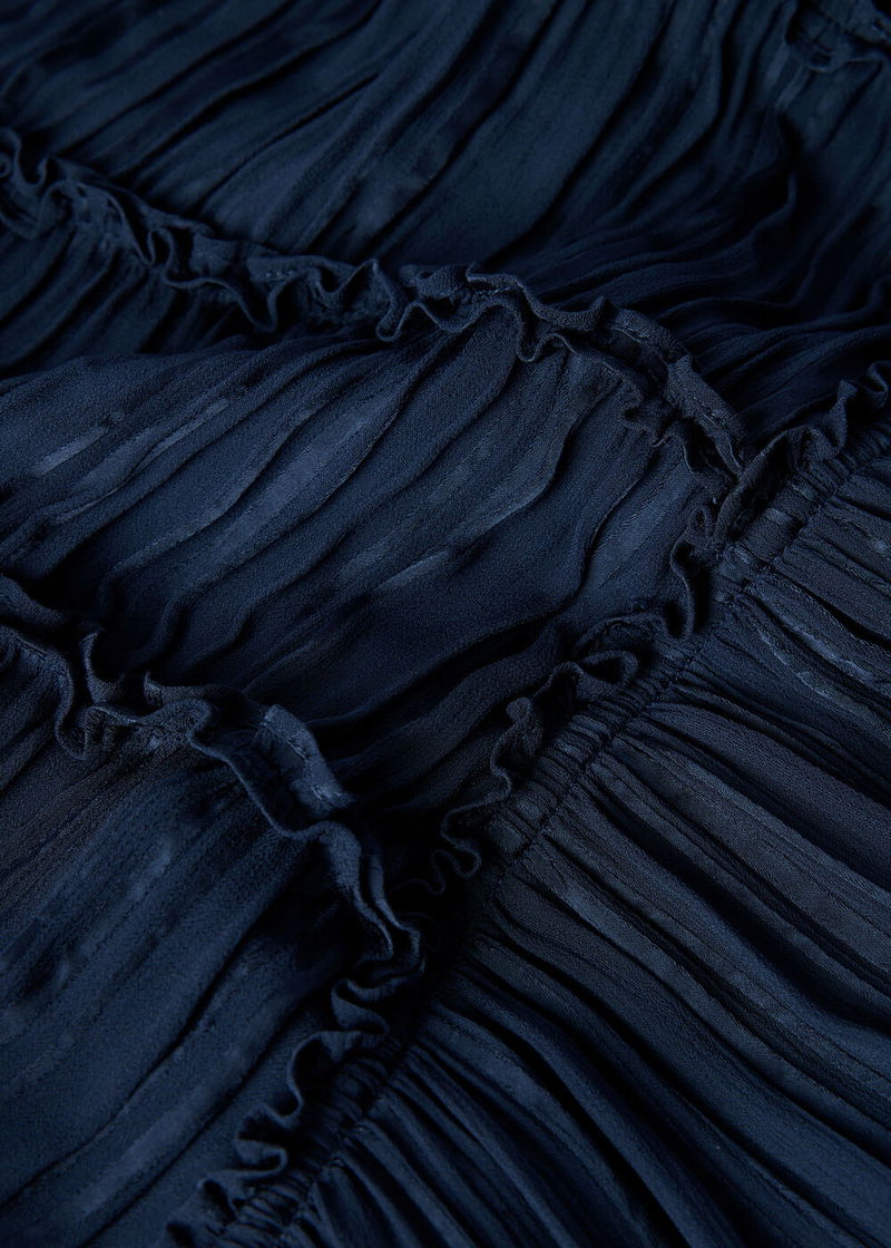 Designed for evening elegance, our Shirred Bodice Dress brings every feminine detail into focus. Looking to make a subtle statement? This piece does exactly that — effortlessly. Crafted in a classic navy shade, it features straps, a flattering square neckline and a shirred bodice for chic tactility while the fluid skirt creates movement with every step. Created as your go-to occasion piece, it embodies quiet elegance with maximum impact.