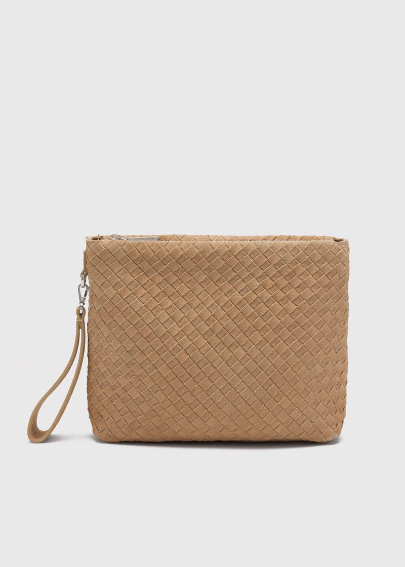 Neutral Avah Woven Suede Zip Clutch
