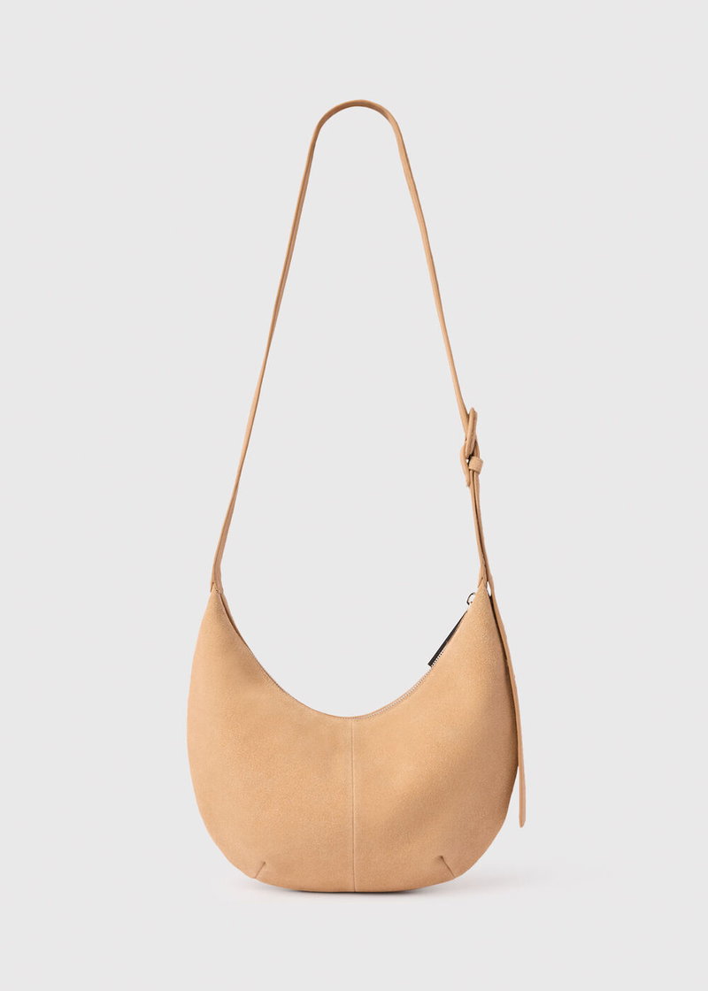With you wherever you go, our Sia Curved Crossbody Bag in a taupe suede shade has been redesigned in a smaller, more versatile size. Perfect for everyday errands or busy weekends in the city, this brown crossbody bag is ideal for carrying all your essentials — from makeup to wallet and keys. Made from high-quality leather, it ages beautifully, making it a timeless addition to your bag collection.