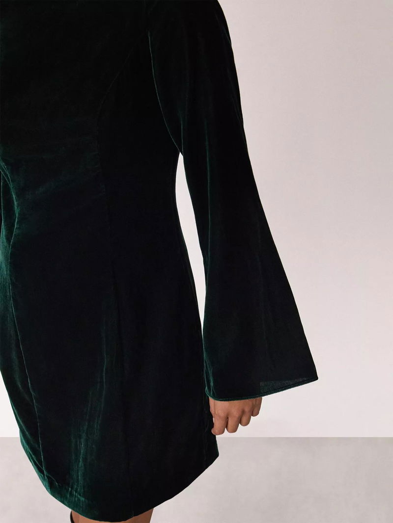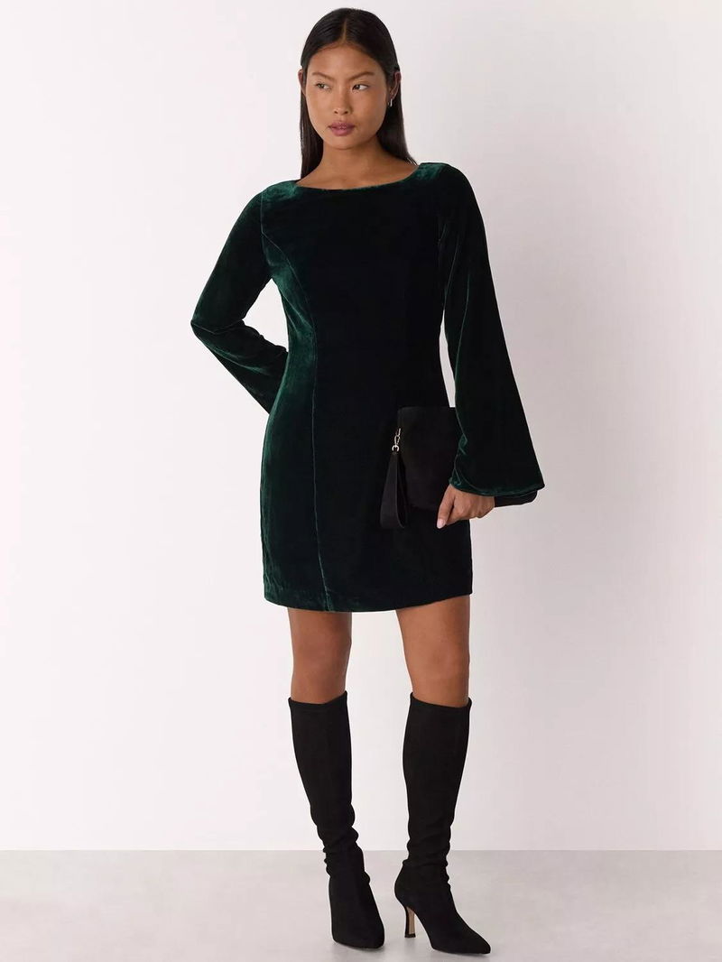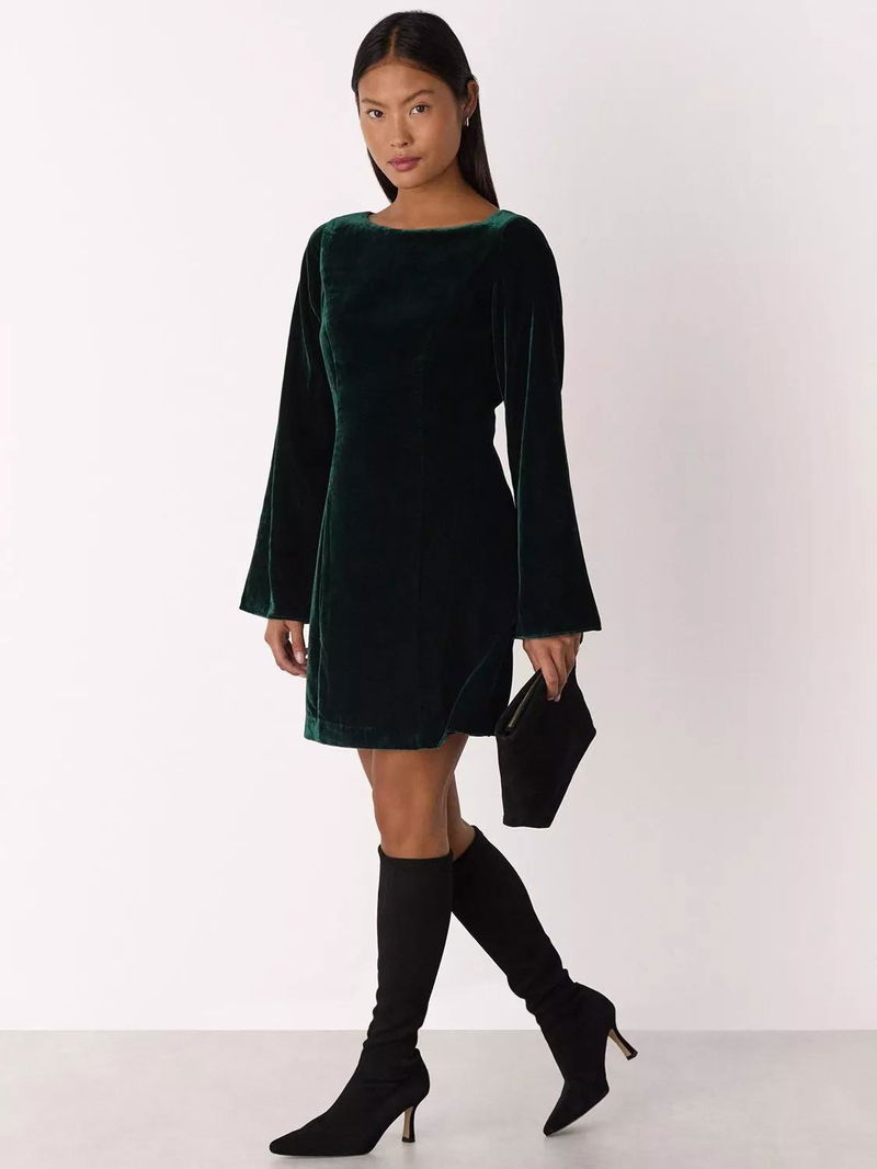Nothing says svelte like a sheath dress. This long sleeve mini dress from Whistles has a boat neckline and an easily styled plain colouring.