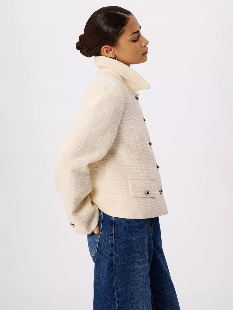 Neatly tailored for a sharp finish, this boucle jacket from Whistles highlights the waist with its cropped hem. Framed with a collar neckline, it is made from a comfortable cotton blend.