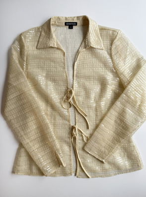 Made from recycled polyester and embellished with recycled sequins, this top is an autumn-winter essential. In a fitted shape, it comes with a high round neck and will turn heads at parties.